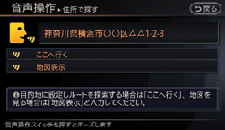 「神奈川県横浜市○○区△△」とコマンドを認識し、「コマンドをどうぞ」“ピッ”というガイドがあります。