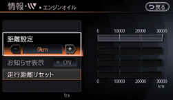 走行距離を設定してメンテナンスをお知らせする画面を表示します。4 種類の項目に対して設定ができます。
