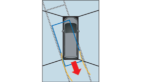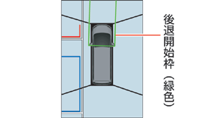 ハンドル位置をそのままにして、ゆっくり後退させます。車両が枠内に入るとチャイムが鳴ります。