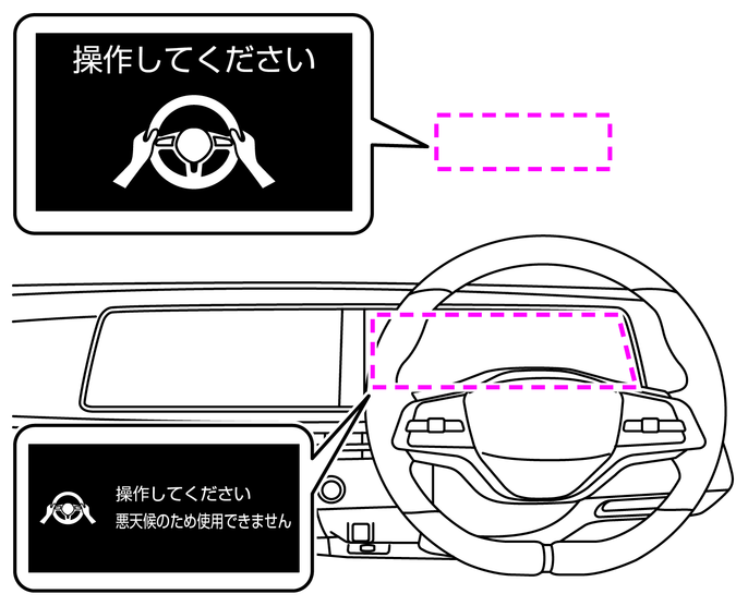 運転者がハンドルを操作すると、車速・車間制御機能、車線維持機能(ハンドル支援)は解除されます。