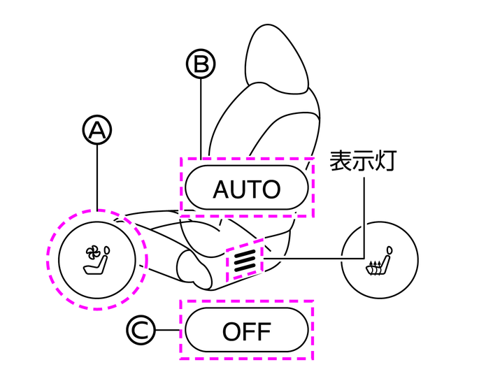 (B)をタッチするとオートエアコンの設定温度に合わせて自動制御で作動します。