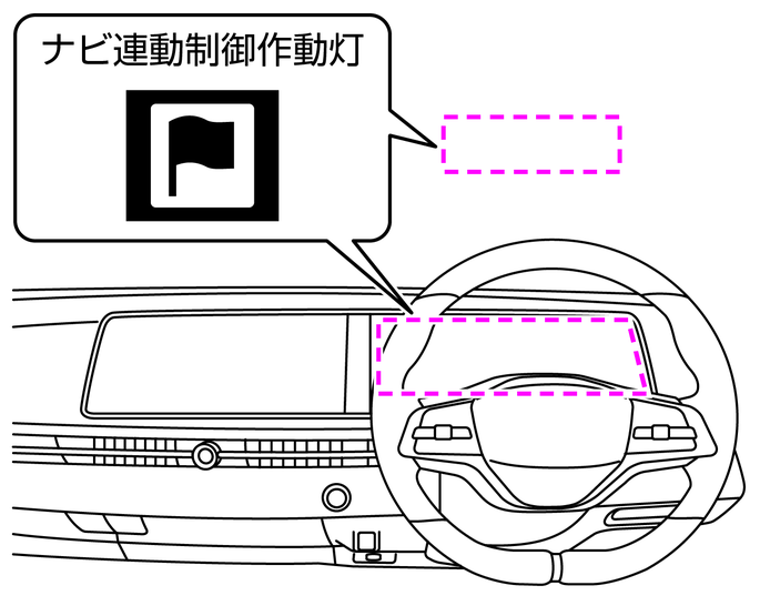 ナビゲーションシステムで目的地を設定し、自動車専用道路本線をプロパイロット2.0で走行すると、ナビ連動制御作動灯