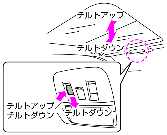 (サンシェードが閉じているときは、サンシェードが開いてからチルトアップします。)