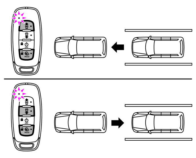 プロパイロット リモート パーキング用インテリジェントキーだけを見ながら操作することは絶対にしないでください。