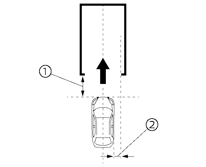 直進で駐車できる位置からプロパイロット リモート パーキングの操作を開始してください。側方の壁などとの距離に応じてステアリングの制御を行い、車両の向きを修正する場合があります。
