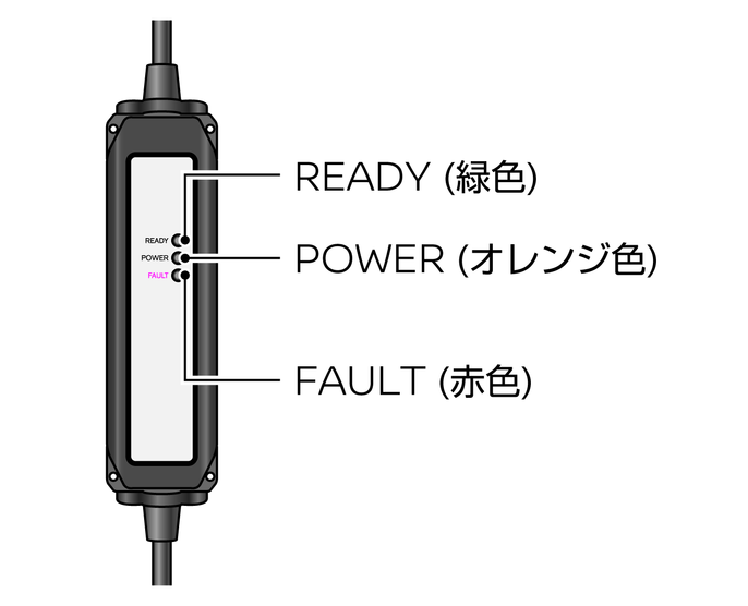 充電ケーブルのコントロールボックスには、充電の状態などを知らせる表示灯があります。