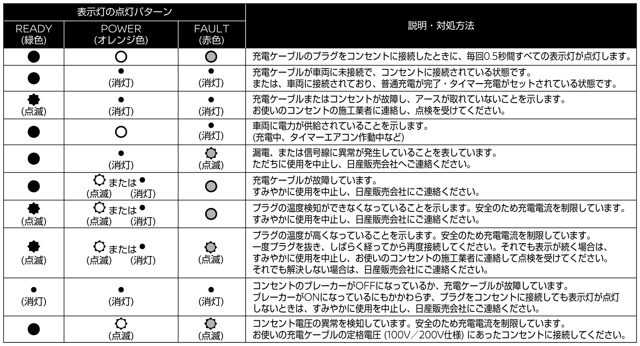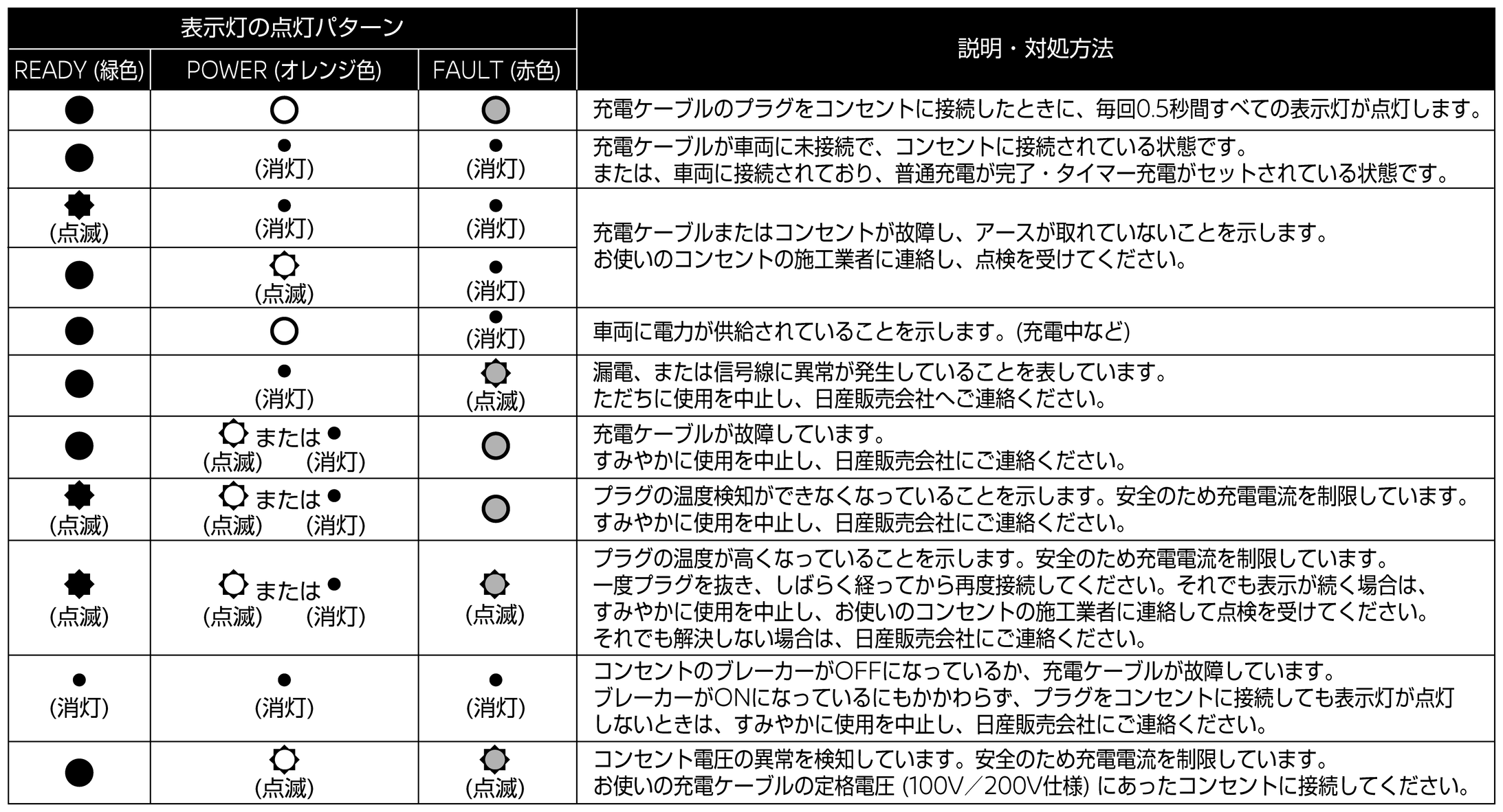 次のようなときは、すみやかに充電ケーブルの使用を中止し、日産販売会社にご連絡ください。