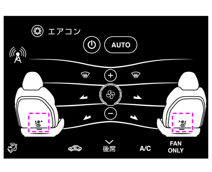 前席ヒーターシートスイッチをタッチすると、前席ヒーターシート調整画面が表示されます。