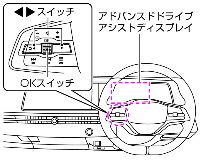 スイッチを数回押し、アドバンスドドライブアシストディスプレイに設定