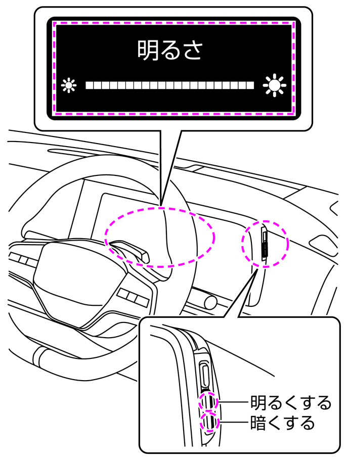 明るさのレベル表示は、アドバンスドドライブアシストディスプレイに表示されます。