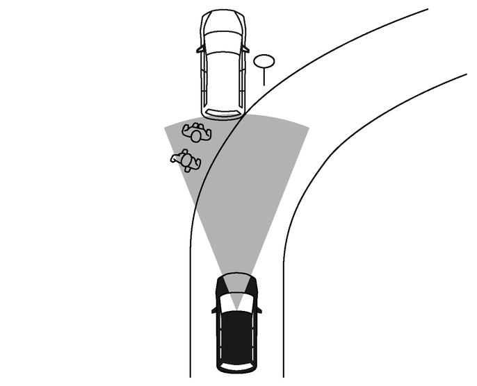 道路形状(カーブ路、カーブの出入り口、ワインディング道、車線規制や工事中など)によっては、一時的に自車正面の対向車にシステムが作動する場合があります。