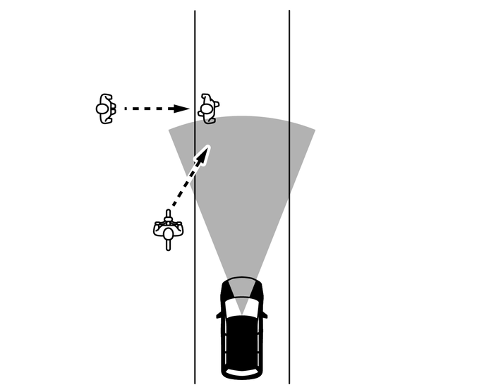 次のような場合は、前方の車両、歩行者、人が乗車している自転車を検知できないことがあります。