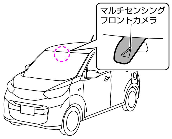 カメラ前方のフロントガラスにステッカー(透明なものを含む)を貼らないでください。
