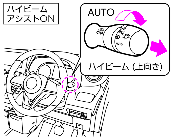 ハイビームアシストをONにする方法