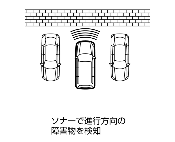 フロントバンパーに取り付けられたソナーにより、進行方向の障害物を検知します。