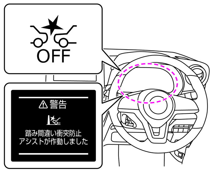 踏み間違い衝突防止アシストには、2つの機能があります。次ページ以降をお読みください。
