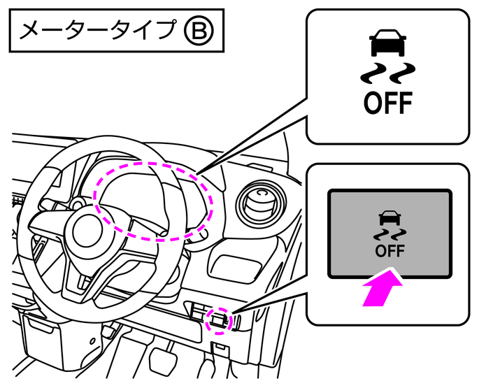 再度、VDCを使用(ON)するときは、もう一度VDC OFFスイッチを押します。VDC OFF表示灯