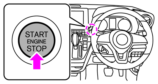 安全な場所に停車し、セレクトレバーをPに入れ、パーキングブレーキをかけます。