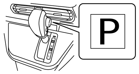 パーキングブレーキがかかっていることと、セレクトレバーがPに入っていることを確認します。