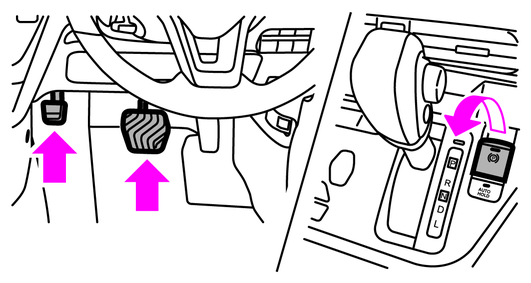 停車するときは、セレクトレバーはDまたはLのままで、ブレーキペダルをしっかりと踏みます。