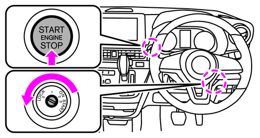キースイッチを左側に回す、またはエンジンスイッチを1回押すと、エンジンが停止します。