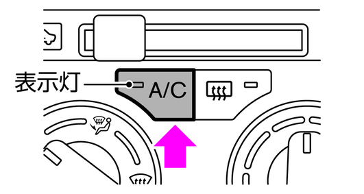 外気温が0℃近くまで下がると、A/Cスイッチが点灯していてもエアコン(冷房・除湿機能)が作動しないことがあります。