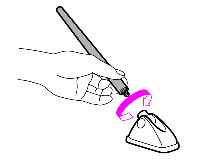 取り付けるときは、アンテナの根元を持ち、矢印と逆方向に回し、確実に締め付けます。
