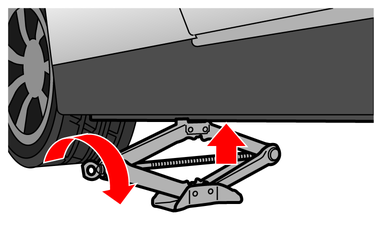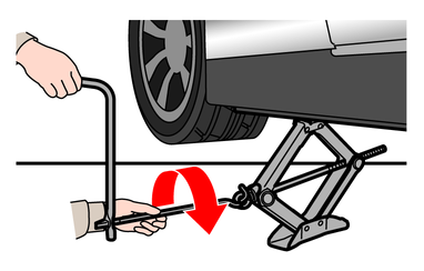 ジャッキハンドルを回して、タイヤと地面が少し離れるまでジャッキアップします。