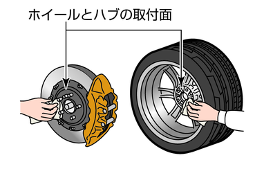 取付面が汚れていると、走行中にナットがゆるみタイヤが外れるおそれがあります。