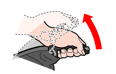 パーキングブレーキをかけるときは、右足でブレーキペダルを踏みながら、パーキングブレーキレバーをいっぱいに引きます。