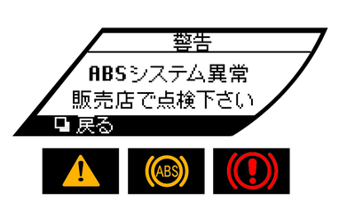 警告灯が点灯したときはABSは作動しませんが、ABSのない普通のブレーキ性能は確保されています。この場合は、滑りやすい路面でのブレーキ時や急ブレーキ時にタイヤがロックすることがあります。