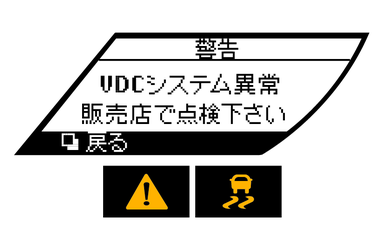 警告灯が点灯したときはVDC、ヒルスタートアシストの作動は停止しますが、それらのシステムのない普通の車として走行できます。滑りやすい路面では注意して走行し、すみやかにNHPC又はNISSAN GT-R特約サービス工場で点検を受けてください。