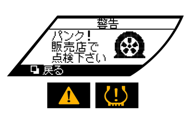 タイヤがパンクすると、タイヤ空気圧警報(タイヤ空気圧警報)が鳴ります。