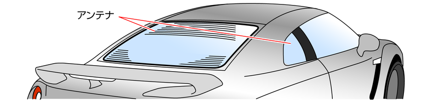 アンテナ線はリヤウインドーガラスと左右のリヤクォーターガラスの内側にあります。