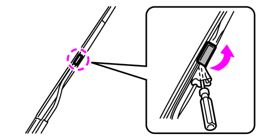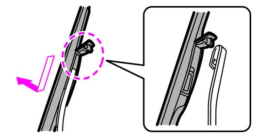 ワイパーブレードを矢印の方向に動かして取り外します。