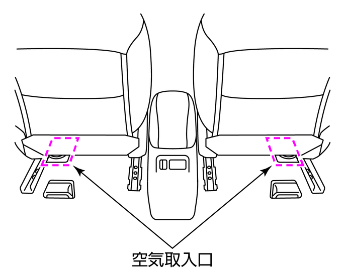 前席シート下にリチウムイオンバッテリーを冷却するための空気取入口があります。