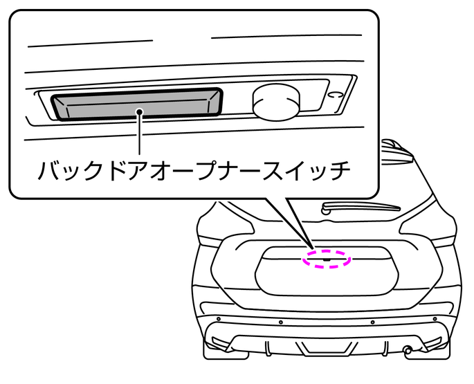 解錠されているときは、バックドアオープナースイッチを押し、バックドアを持ち上げます。
