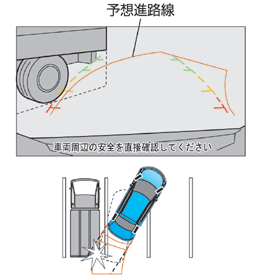 立体物が近くにある場合には実際の距離と異なって表示される場合があります。