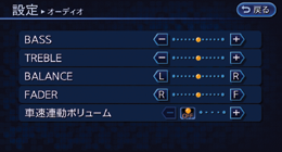 車速に連動して音量を自動調整する感度を設定します。 - または + をタッチして効果幅をオフ(0)〜3(効果大)の範囲で設定できます。