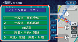 メニューに表示されている番号をタッチすると、情報画面が表示されます。