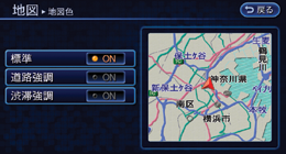 メニューボタン → 設定 → ナビゲーション → 地図ビューの設定 → 地図表示設定 → 地図色の手順でも設定できます。