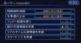 JARTICおよびVICSセンターより提供された交通情報を曜日別/時間帯別でパターン化して地図データに記録したものです。統計交通情報を利用することにより、ドライブ中の時間経過とともに変化する交通情報をあらかじめ予測してルート探索を行うことができます。
