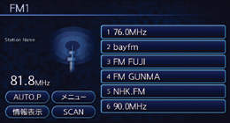 FM・AMボタンを押すと、ラジオ操作画面を表示します。