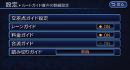設定 → ナビゲーション → ルートガイドの設定 → ルートガイド音声の詳細設定 → 交差点ガイド設定をタッチする