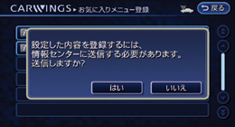 日産カーウイングスデータセンターに情報が送信され、登録が完了します。登録する情報チャンネルが日産カーウイングスデータセンターに送信されないと、お気に入りに登録されません。