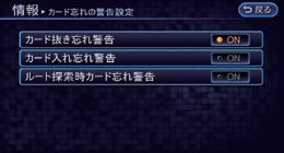 ルートガイド開始時、ルート上に有料道路がある場合にETCカードを入れ忘れていると音声と表示で警告します。