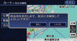 行き先の追加、修正、削除などのルート編集を行った場合、利用指定しているインターチェンジを解除するかどうかを確認するメッセージが表示されることがあります。