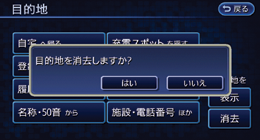 1. メニューボタンを押す 目的地 → 消去をタッチする