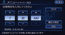 タイマーエアコンは、出発予定時刻および作動する曜日を設定できます。これらの設定は2パターンまで保存することができます。