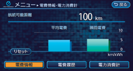 平均電費や瞬間電費を表示して、自分がどれくらいエコドライブができているか確認できます。
